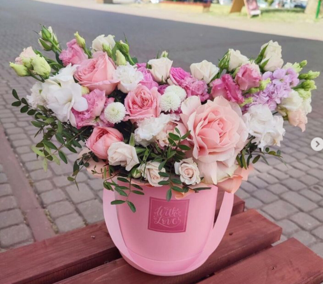Красивая шляпная коробка с живыми цветами