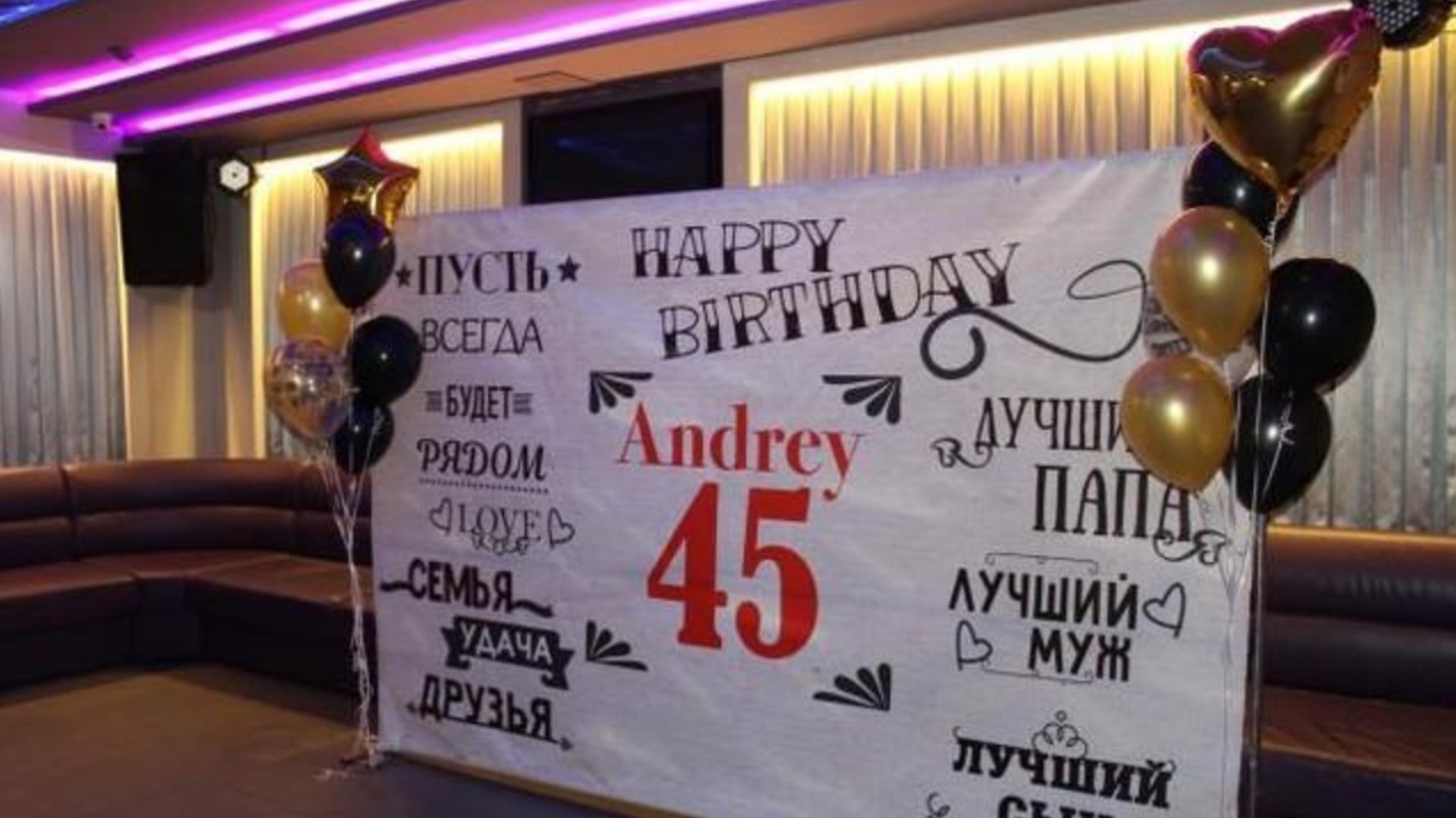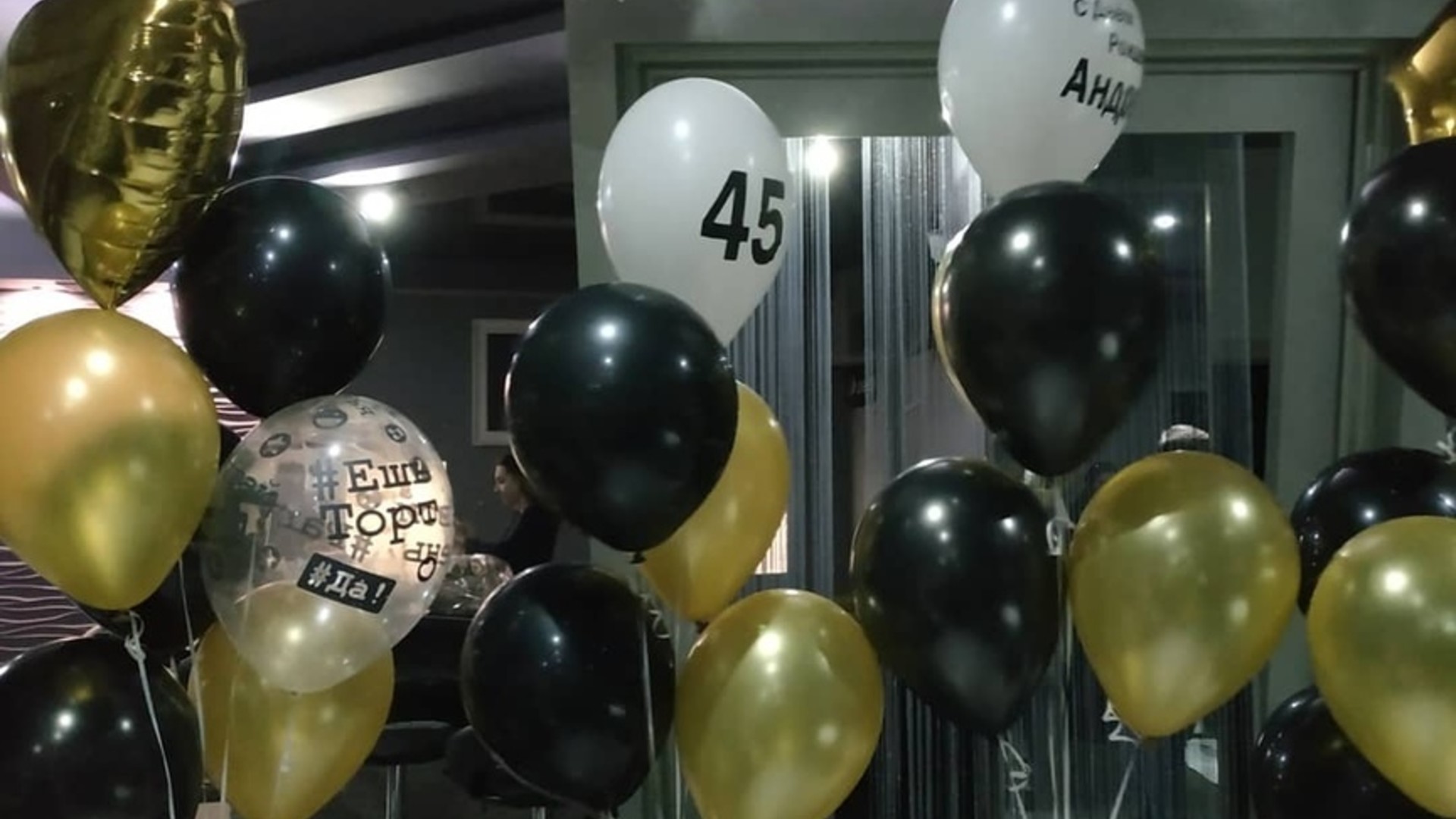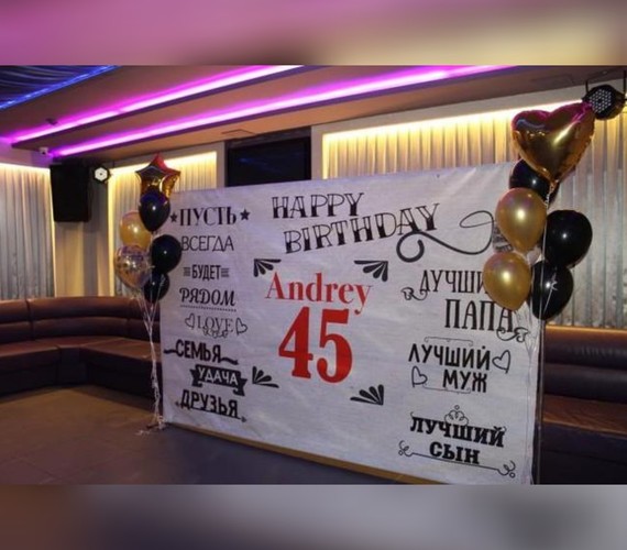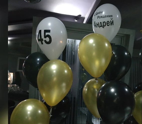 Украшение помещения на тематику др в черно-золотой палитре с использованием индивидуальных надписей. Предварительный заказ
