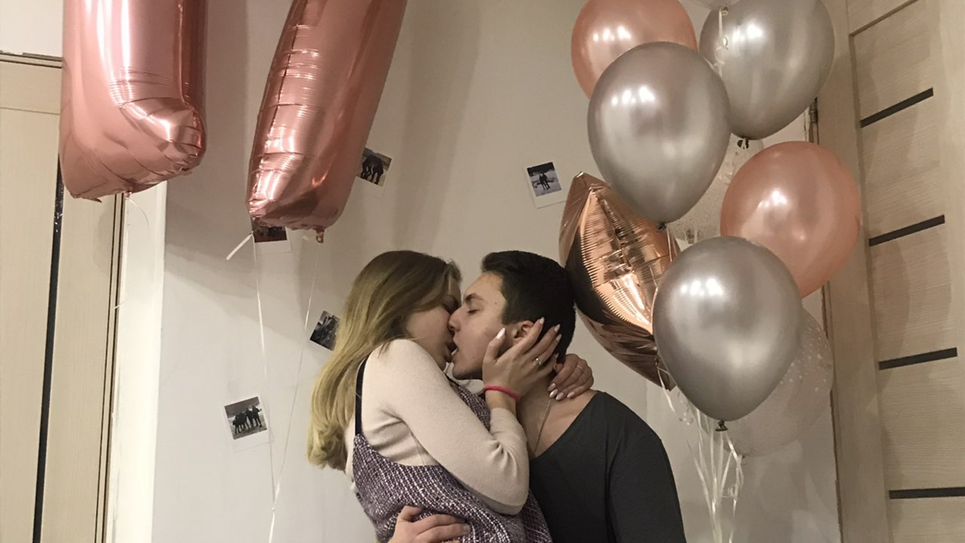 Две цифры розовое золото и фонтан с фольгированными звездами и шарами с конфетти