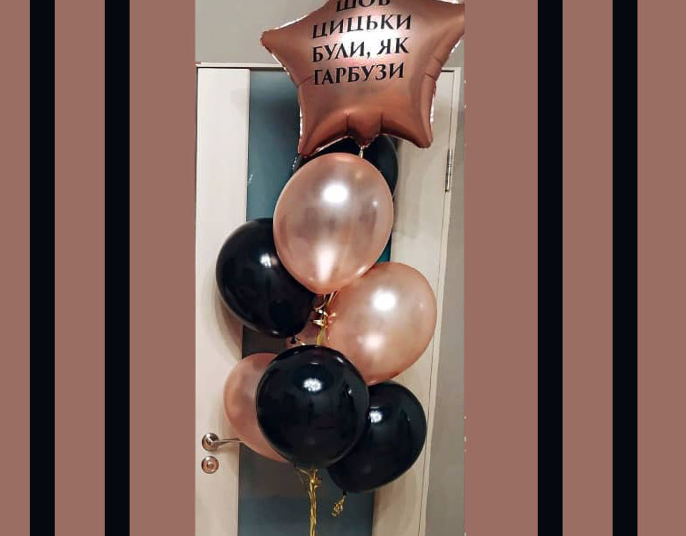 Связка из черно-бежевых шаров и фольгированной звезды.