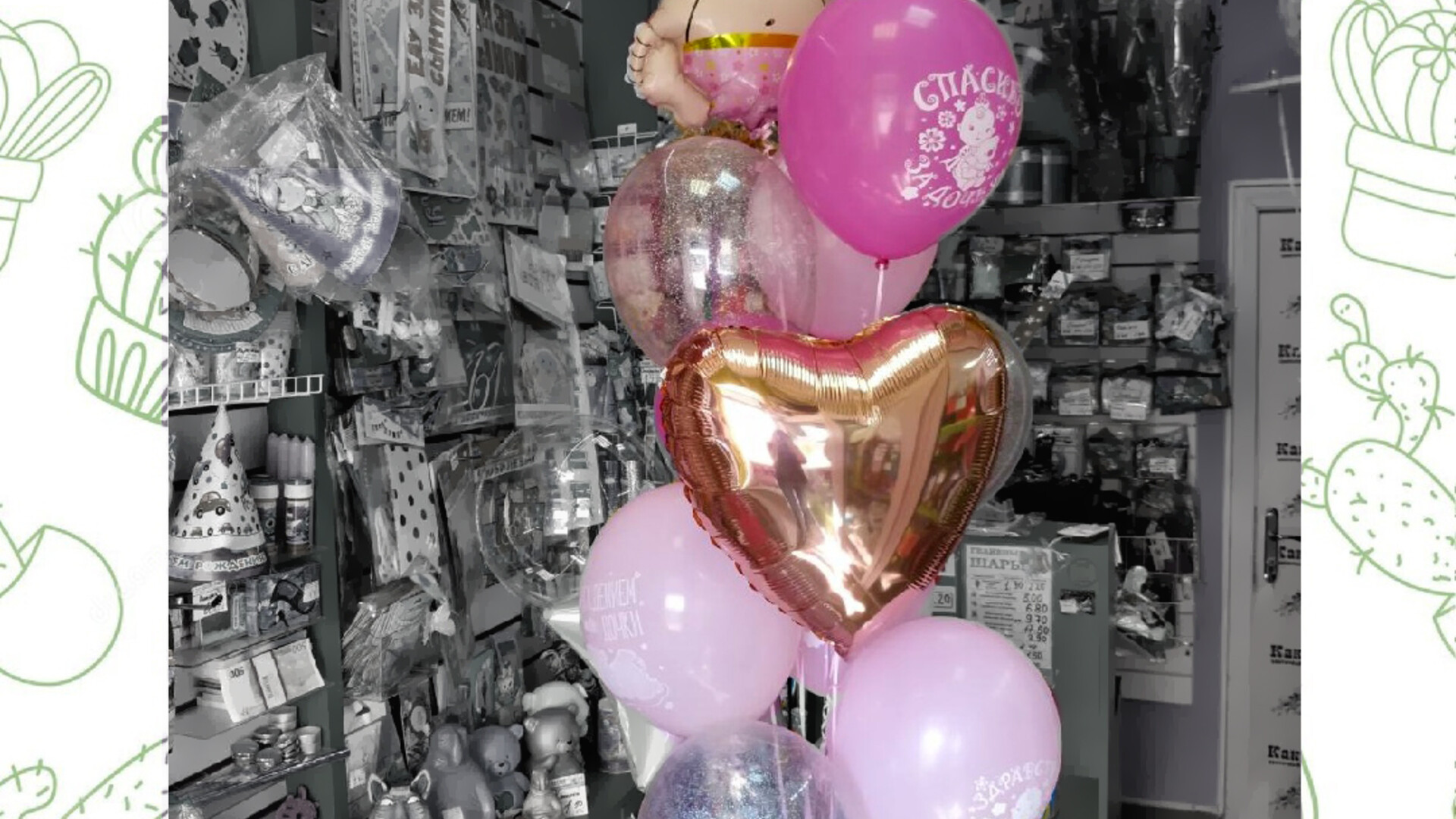 Самостоятельно забрать шары Вы можете по адресу: г. Могилев, ул. Ленинская, 38 (магазин КАКТУС)