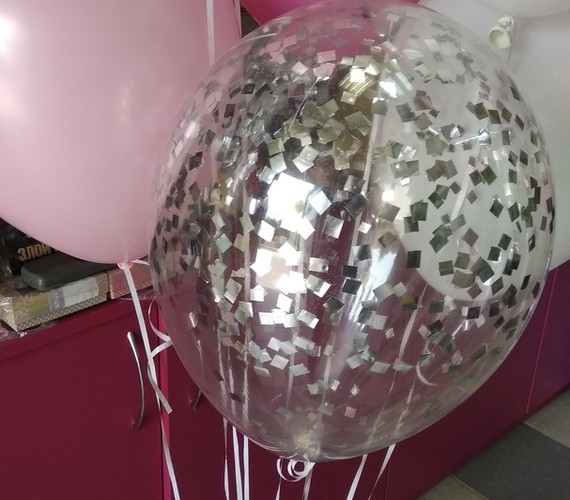 Гелиевые шары с конфетти придадут легкость и оригинальность Вашей композии. Наполнитель (конфетти) может быть любого цвета на Ваш выбор.