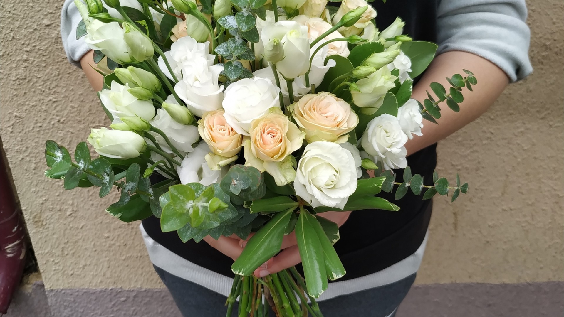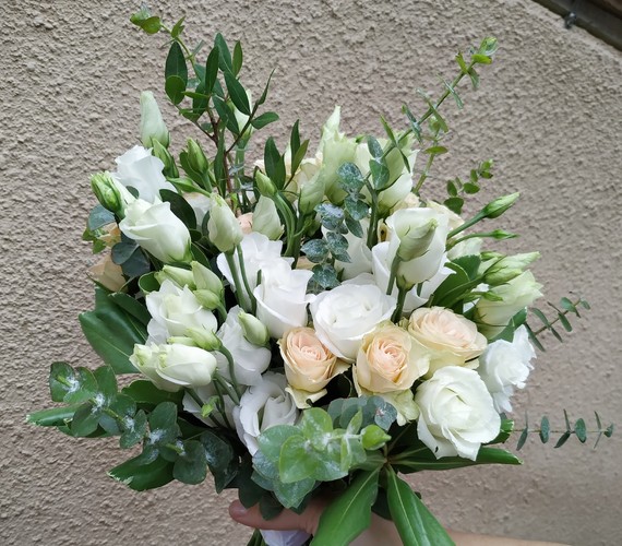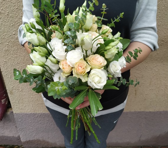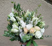 Сваденый букет из кустовых роз и эустомы. Заказ букета невесты необходимо выполнять за две недели до намеченного торжества. Дополнительно у нас Вы сможете заказать букет-дублер, букеты подружек, букет свидетельницы, бутоньерку для жениха.