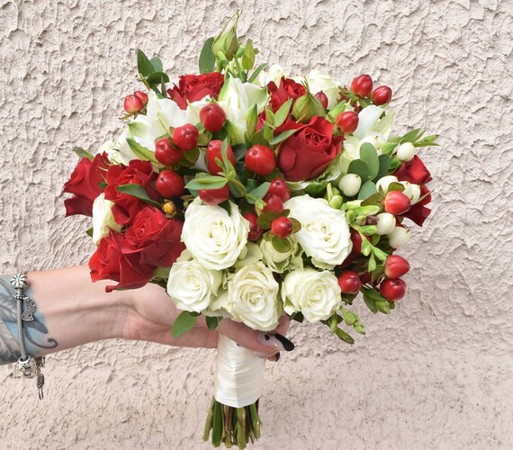 Свадебный букет красно-белый Шарм