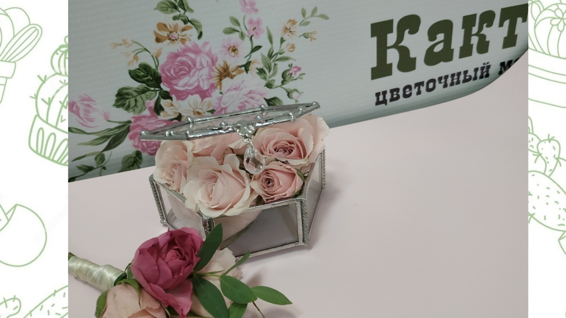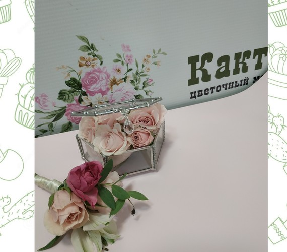 бутоньерка, украшение коробочки для колец